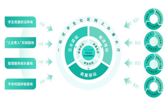 近年来,学校党委深入贯彻落实习近平总书记关于教育的重要论述,以教育部“一站式”学生社区建设要求为指导,紧紧围绕立德树人根本任务,全面实施“时代新人铸魂工程”,按照围绕学生、关照学生、服务学生的育人理念,从党建引领、队伍进驻、学生参与、文化建设、数字赋能、条件保障等六个维度积极探索和实践,逐步构建具有湖理特色的1+3+N“一站式”学生社区综合管理模式。1个网上综合办事大厅,求实、求知、求是3个社区综合服务中心,芯光、商翼、毓贤、艺路同行等5个教学院社区驿站,美工坊、星光导航 2个辅导员工作室成为理工学子学习生活的“温馨家园”。