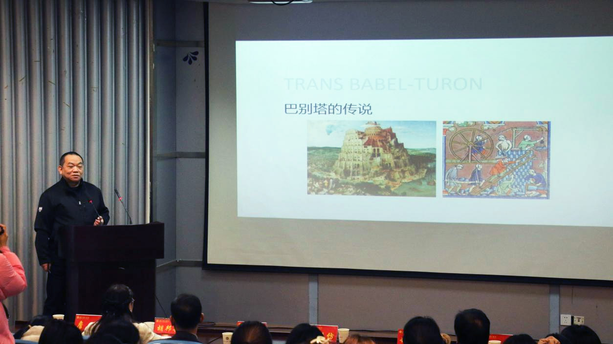 王汉平以“一种语言,一种境界;一种理想,一种文化——世界语,为你打开一个全新的世界”为题,系统梳理了世界语的诞生背景、国际传播脉络及其在中国百余年间生根开花的丰富历程,在运用多重案例不断增强青年学子对世界语这一“世界普通话”认知的同时,也展现出了世界语的淋漓魅力与多重意义。赵建平结合近40年世界语播音、翻译与教学经历,带来“跨越巴别塔——我用世界语行走世界”的生动分享。从1986年北京第71届国际世界语大会,到2019年芬兰拉赫蒂第104届大会,他用一张张珍贵照片和亲身经历生动地展示出世界语在跨文化传播中的独特魅力。
