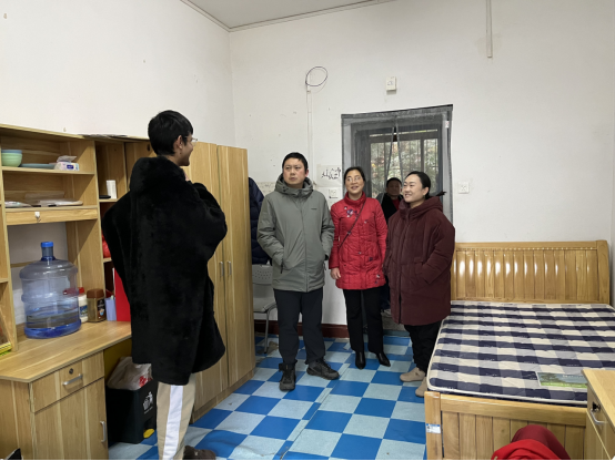 在留学生公寓公共洗衣房、厨房,相关人员对学生用水用电、生活便利等方面设施进行了现场检查。走访过程中,相关负责同志深入学生宿舍,与留校学生进行交流,关心慰问寒假学习、生活状态,提醒同学们注意安全、劳逸结合,加强体育锻炼,充分利用寒假时间,体验中国年俗文化,度过一个安全愉快且有意义的假期。