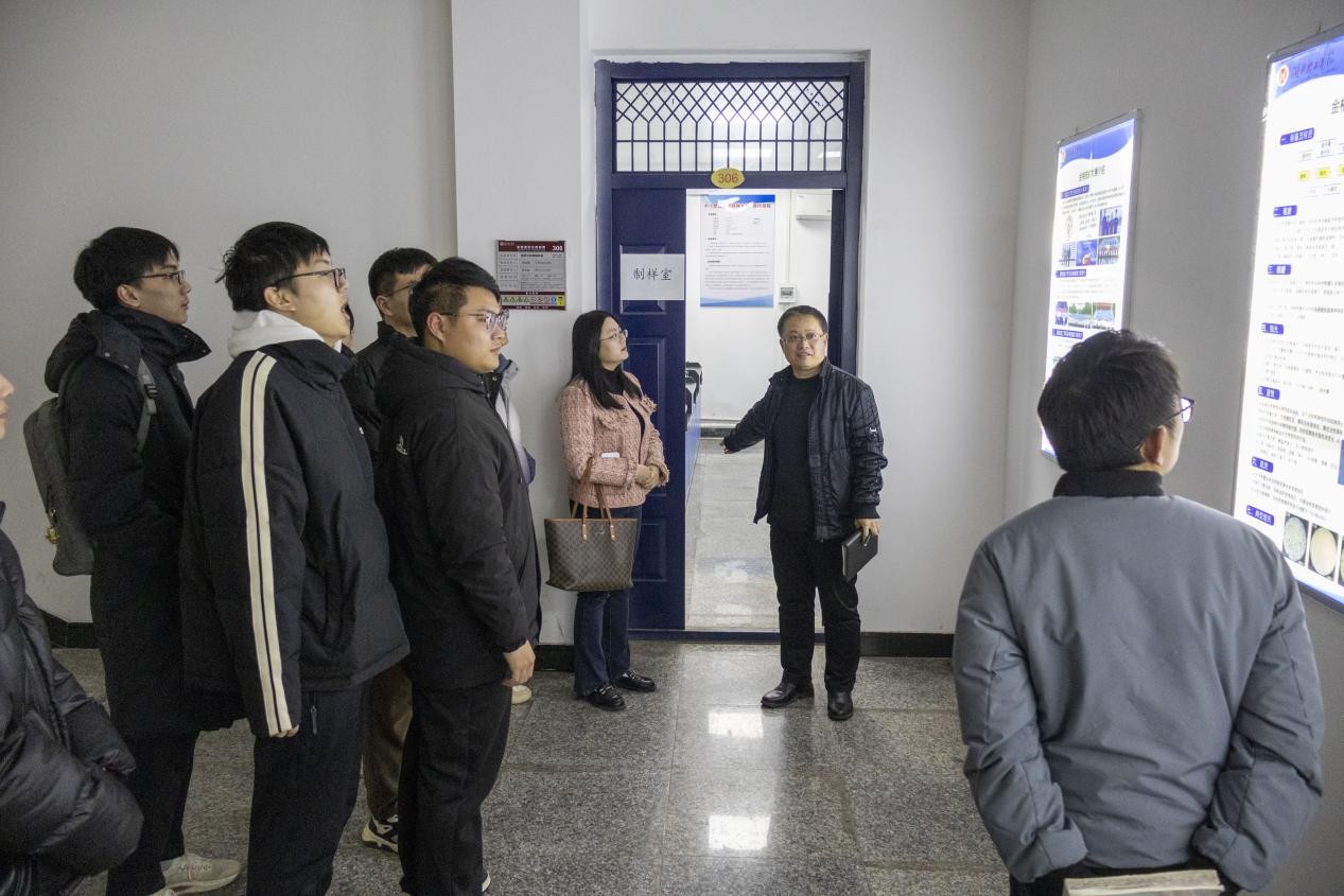 交流会上,殷婷婷简要介绍了湖北师范大学材料学院的专业建设和学生培养。冯伟结合教育教学审核评估、专业监测评估和工程教育认证,强调了学科竞赛类实践活动在学生工程素养训练、创新创业能力培养方面的重要作用。付勇军副主任通过详实的数据图表,介绍了校赛选拔到国赛冲刺的全周期培养模式,解码了梯度化训练方案和动态化奖励机制。会后,代表团实地观摩了今年会金相实验室,深入了解设备配置与教学应用场景。