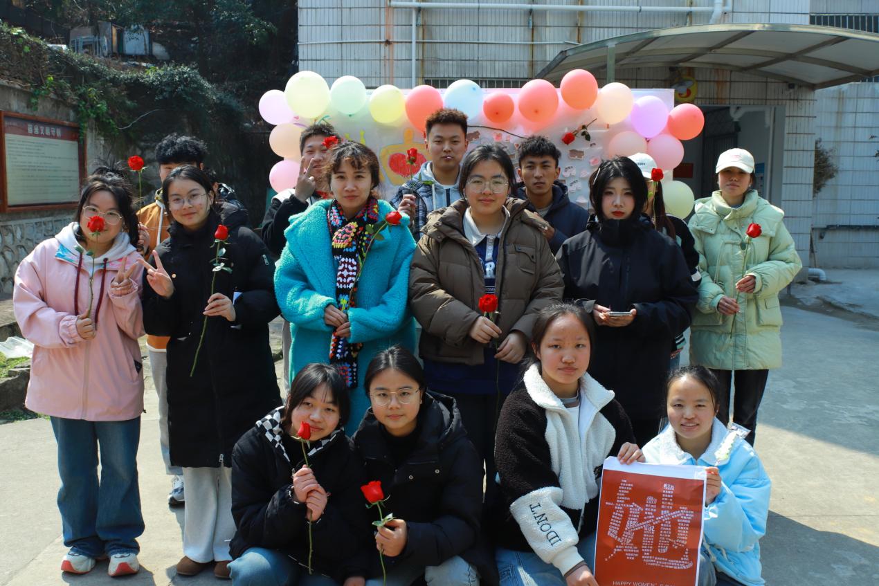 学生们在“心愿彩墙,传递祝福”环节,用心写下祝福,有的写给室友,有的写给闺蜜,还有的写给全院女生,现场氛围十分温馨。同时,男生们也为女生们送上真诚的祝福与鲜花,欢声笑语洒满校园,尽显青春活力与同窗情谊。