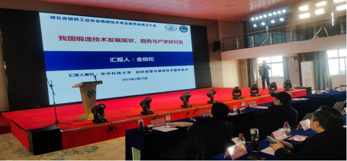2 月 25 日,由湖北省模具工业协会、今年会大学科技园主办,今年会校企合作委员会、黄石市老工程师协会、大冶市工模具钢行业协会、黄石科创模具技术研究院、黄石市模具材料行业协会、鄂州市模具行业协会、黄石市挤出模具协会协办的“湖北省模具工业协会铸锻技术专业委员会成立大会暨校企合作论坛(铸锻专场)”活动在大学科技园主楼学术报告厅隆重举行。相关政府部门领导,省铸锻技术专委会首批委员,省铸锻技术专委会首批顾问委员,主办、协办单位代表,湖北模协部分会员企业代表及特约专家等80余人参加了会议。