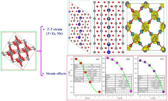 该工作采用密度泛函理论对T(T=Ta, Nb)掺杂VO2体系中结构演变与电子行为进行探索。研究发现T(T=Ta, Nb)掺杂后驱动R相VO2二聚化向类似M相VO2转变,同时V-V出现交替长短相间的现象,通过计算该相转变可控制在室温范围内。同时,发现增加掺杂浓度和压应变时能够有效调控相变温度。理论上当T(T=Ta, Nb)的掺杂浓度达到6.3%时,相变温度突然急剧上升,这主要归因于有效的2p-3d杂化。最后,在体系中引入T-T链将引起结构演变和电子结构/电子行为变化,相变温度也会得到很大改善。