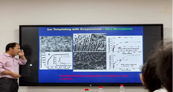 9月8日下午,张教授举办了两场讲座。在“Higher education and study & research in the UK (Chemistry and Materials)”讲座中,他结合自身在英国多年的教学科研经验,为有志于赴英深造的学子们提供了宝贵的建议。随后,他以“Fundamental and applications of freezing and ice-templated materials”为题,进一步阐述了冷冻和冰模板材料的基础原理和应用,帮助学生们更全面地理解这一前沿领域。